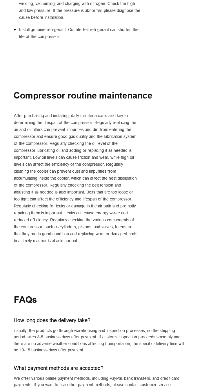 Please confirm the compressor is in stock and verify its core specifications before purchasing. We prioritize matching you with inventory from your local distributor, We provide actual photos for your confirmation before packaging and shipping.