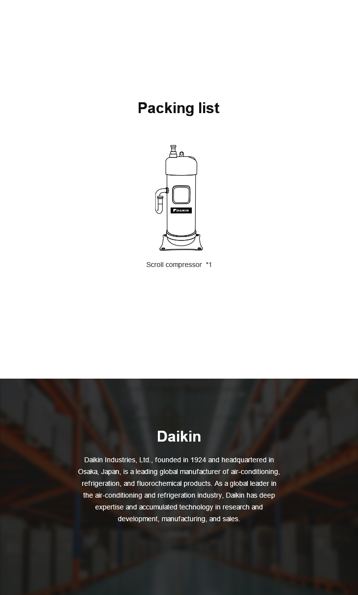 Since its establishment in 1924, Daikin has developed into a comprehensive manufacturing enterprise spanning multiple fields such as air-conditioning, fluorine chemistry, and hydraulic machinery. Especially in the field of air conditioning, it is a professional enterprise integrating R&D, production, sales and service of air conditioners, refrigerants and compressors.