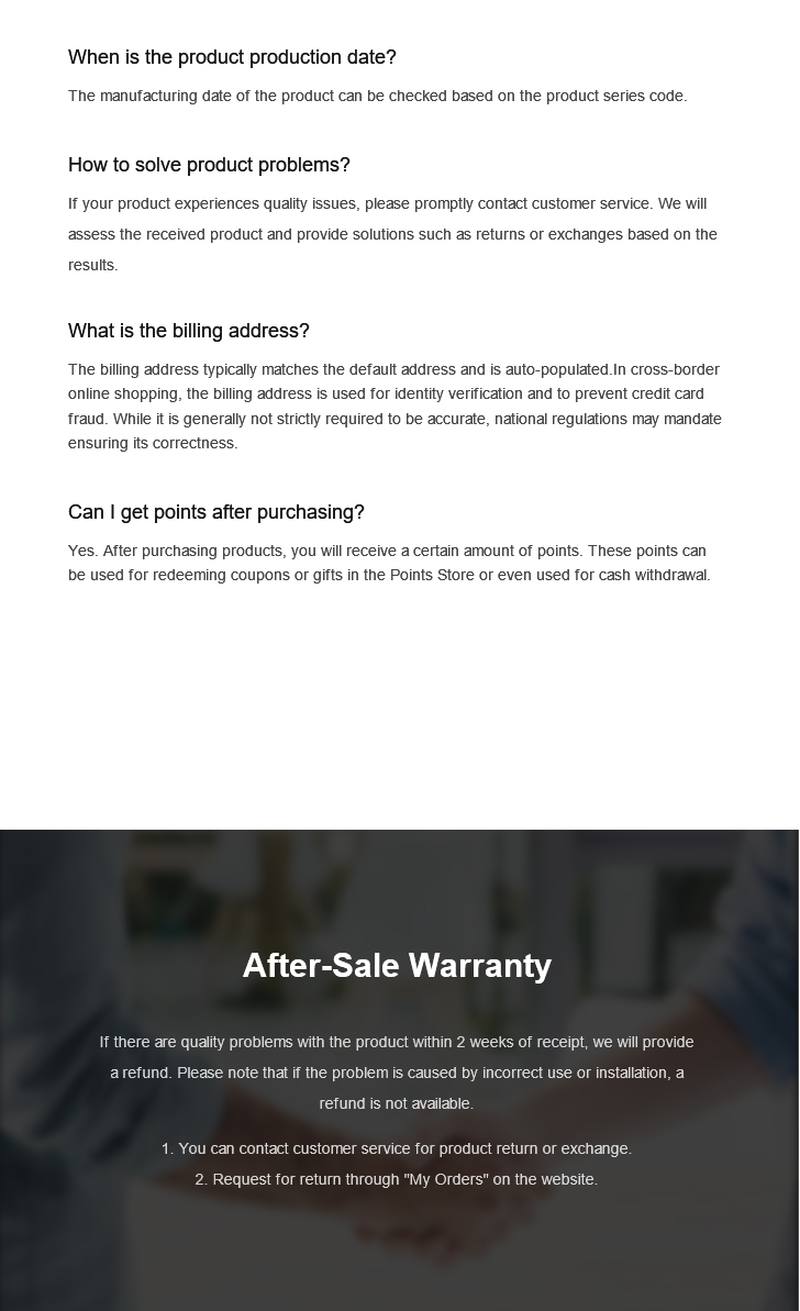 3. If the product is damaged during transportation or cannot be repaired due to non-human-caused within 1 year, no return, we will directly refund or resend the new product.