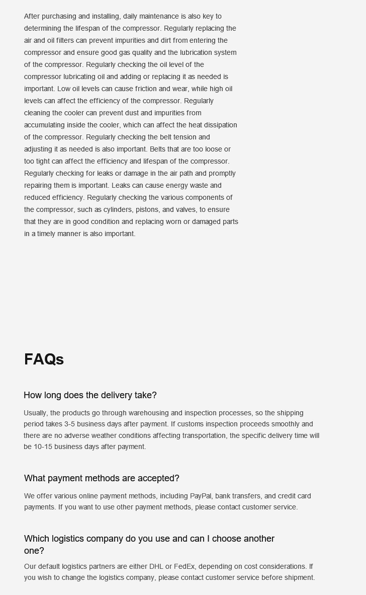 Please confirm the compressor is in stock and verify its core specifications before purchasing. We prioritize matching you with inventory from your local distributor, We provide actual photos for your confirmation before packaging and shipping.
