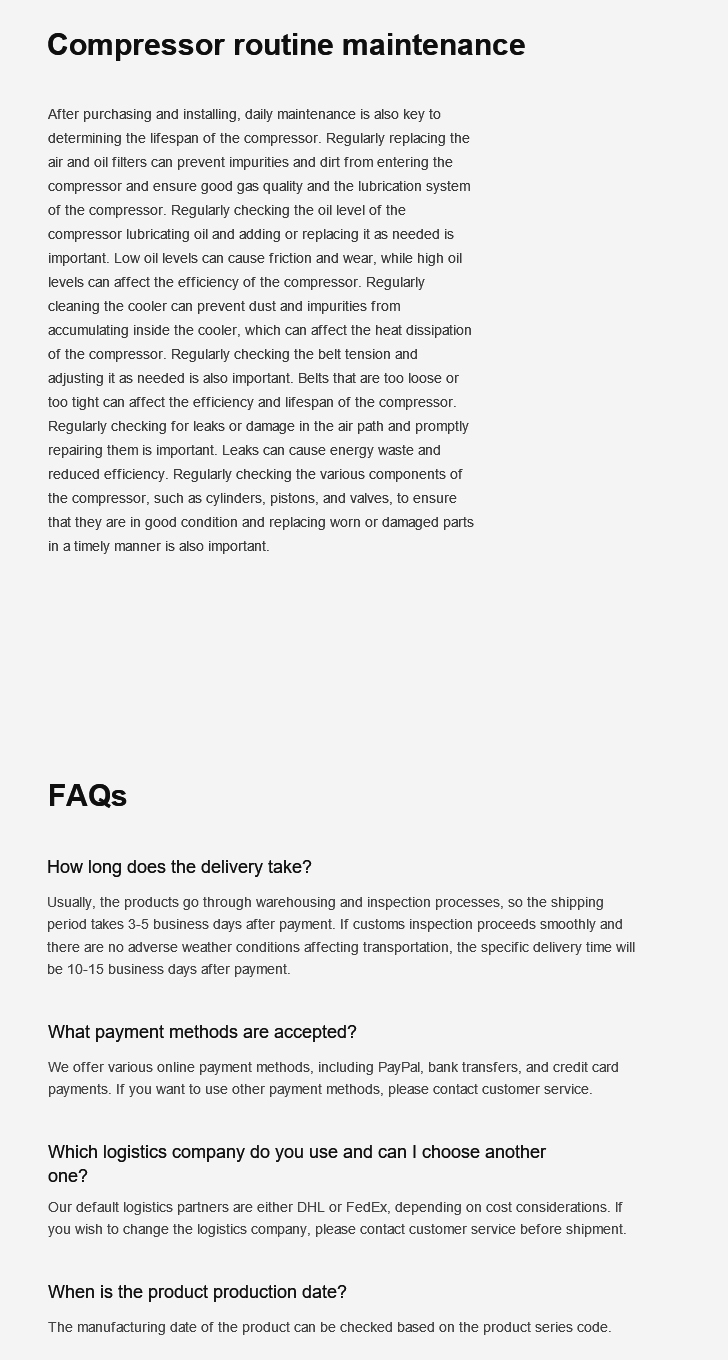 Please confirm the compressor is in stock and verify its core specifications before purchasing. We prioritize matching you with inventory from your local distributor, We provide actual photos for your confirmation before packaging and shipping.