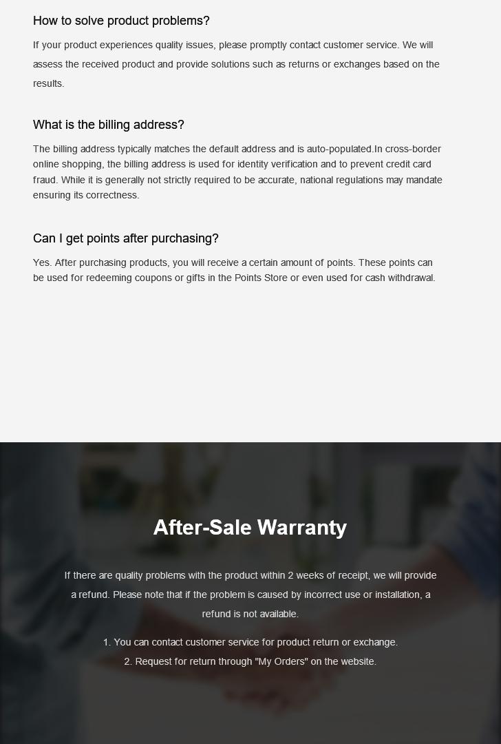 3. If the product is damaged during transportation or cannot be repaired due to non-human-caused within 1 year, no return, we will directly refund or resend the new product.