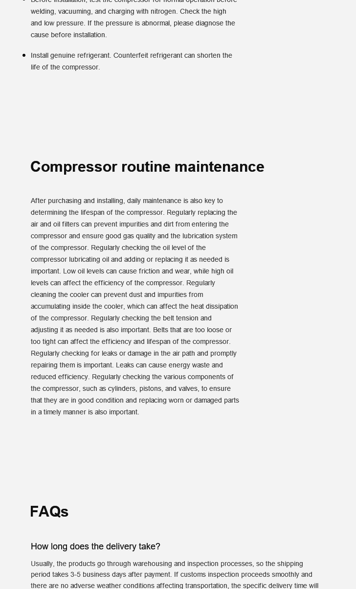 Inventory Availability:Please confirm the compressor is in stock and verify its core specifications before purchasing. We prioritize matching you with inventory from your local distributor, We provide actual photos for your confirmation before packaging and shipping.